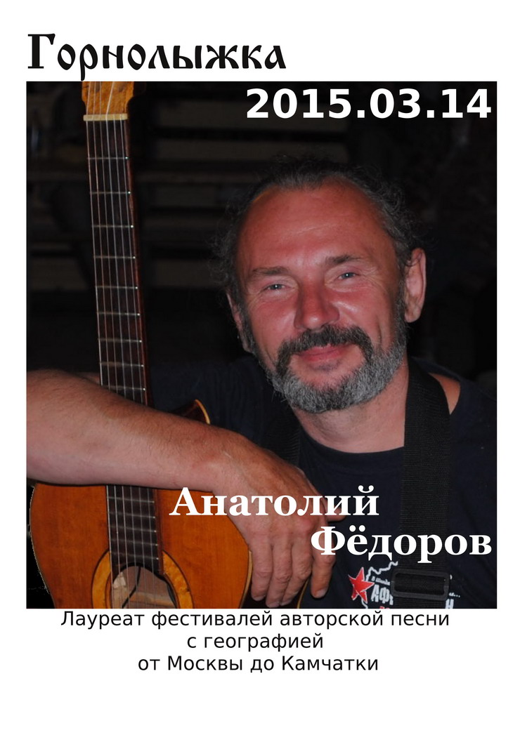 14 марта у нас в гостях лауреат фестивалей авторской песни, с географией от Москвы до Камчатки, Анатолий Фёдоров